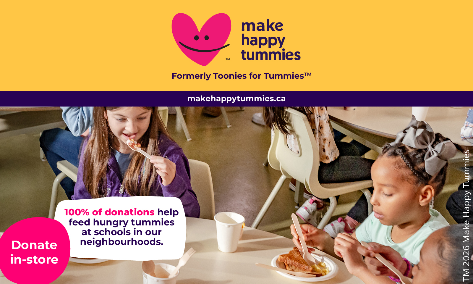 From January 29 to February 11, Calgary Co-op is proud to join the nationwide Make Happy Tummies campaign, where 100% of donations collected go directly to local schools.