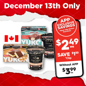 Chapman’s Super Premium/Yukon Bars (500 mL / 5–8 pk) are just $2.49 each*. Indulge in rich, frosty treats that bring festive cheer to any celebration. Limit of 4.