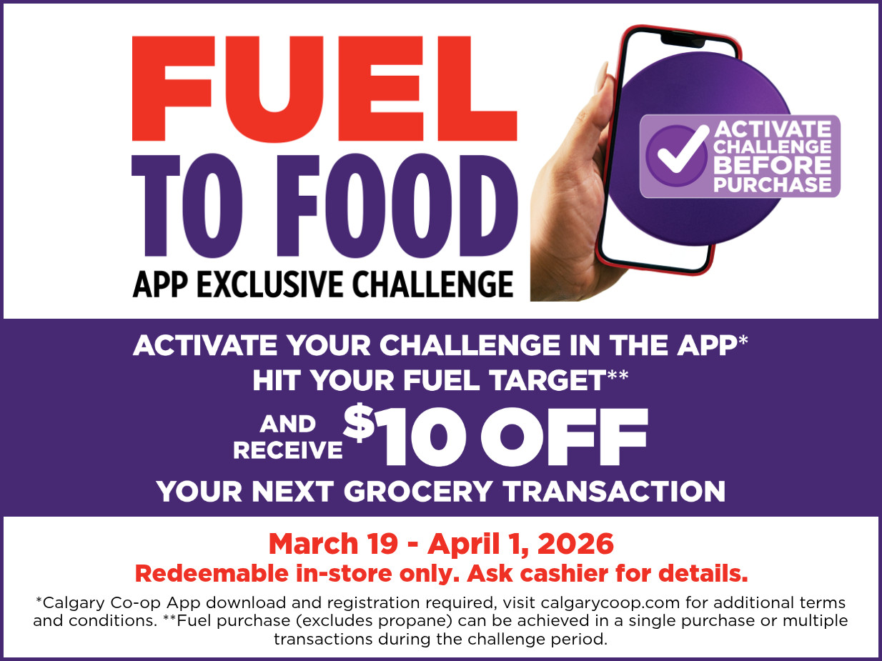 *Calgary Co-op App download and registration required. Visit calgarycoop.com/appterms for additional terms and conditions.