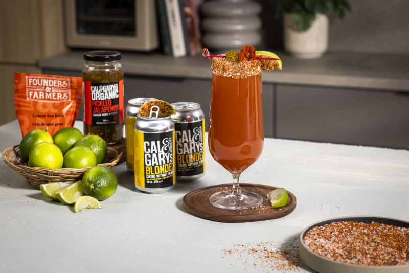 Top with Cal and Gary's Blonde Ale Non-Alcoholic Beer.